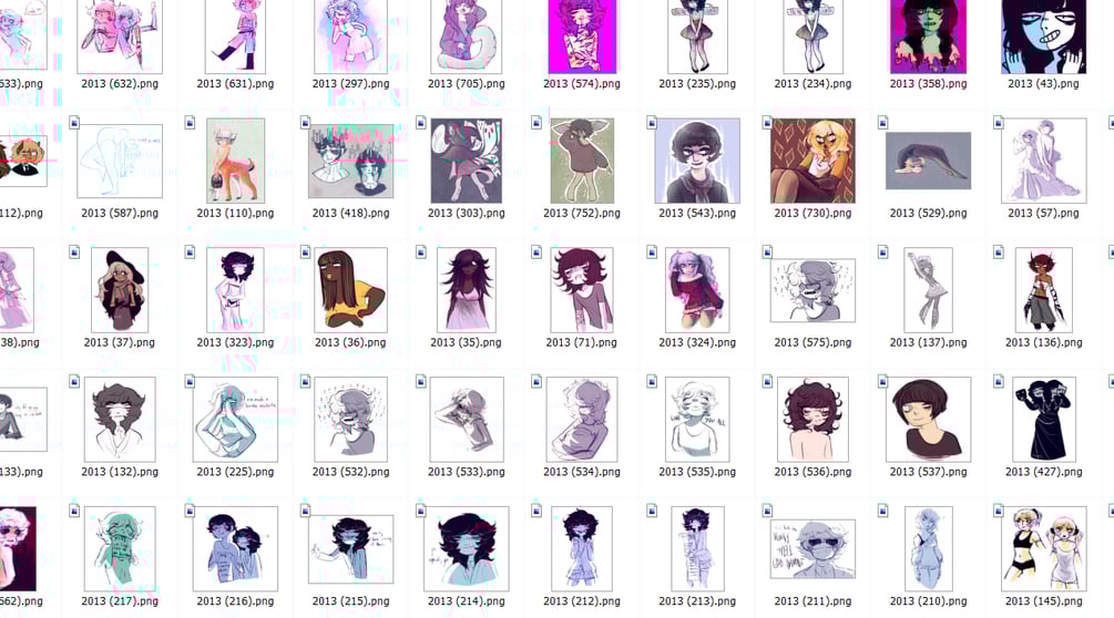 768 files depicting my non-explicit 2013 art of original (at the time, some are now rehomed) characters