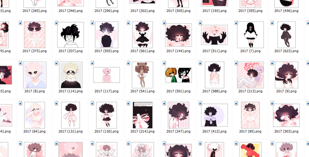 654 files depicting my non-explicit 2017 art of original (at the time, some are now rehomed) characters (UP TO 100 FILES WILL BE ALT VERSIONS)